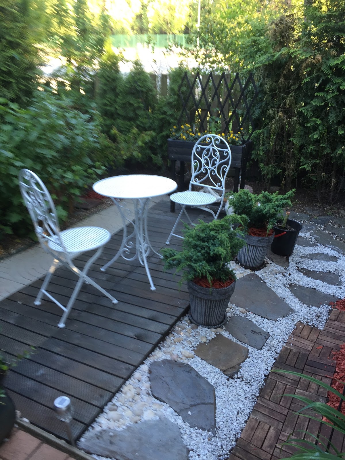 Ja myös pöydän. Liuskekivet saivat kaverikseen pöytiin sopivan kiventyksen.
